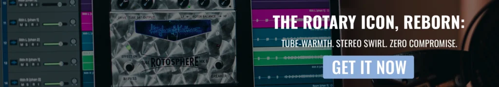 The Tube Rotosphere honors that recipe with advanced tube-saturation modeling and a Breaker for power-down stops—so your Rhodes® parts, organ lines, synth pads, and guitar tones all take on that legendary motion.